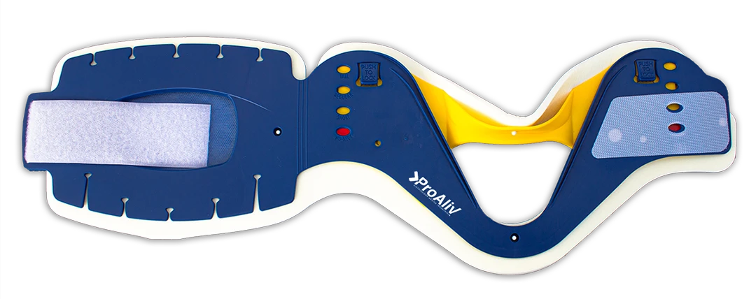 Hecho de espuma insulada. Cómodas cintas para barbilla y frente. Orificios grandes a la altura de los oídos para facilitar el monitoreo de los mismos. Interferencia mínima con rayos X, resonancia magnética y escáner CT. Cubiertos con vinil a prueba de agua. Compatible con camillas rígidas y collarines cervicales.