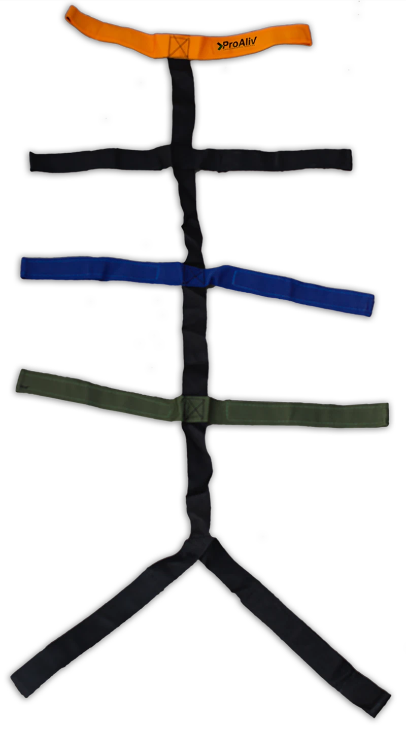 Cintas de diferentes colores con velcro para facilitar su uso. Hecho para uso en camillas de plástico y madera.